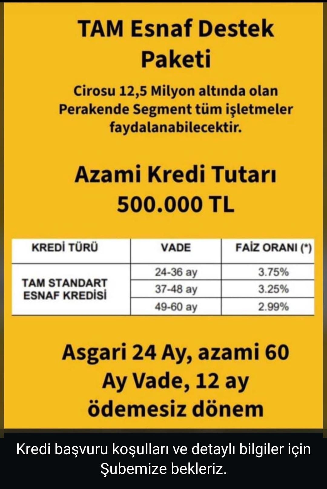 Vakıfbank Gaziantep Şubesi ile yapmış olduğumuz anlaşma gereği odamıza bağlı esnaflarımız için özel ticari kredi oranları ektedir: